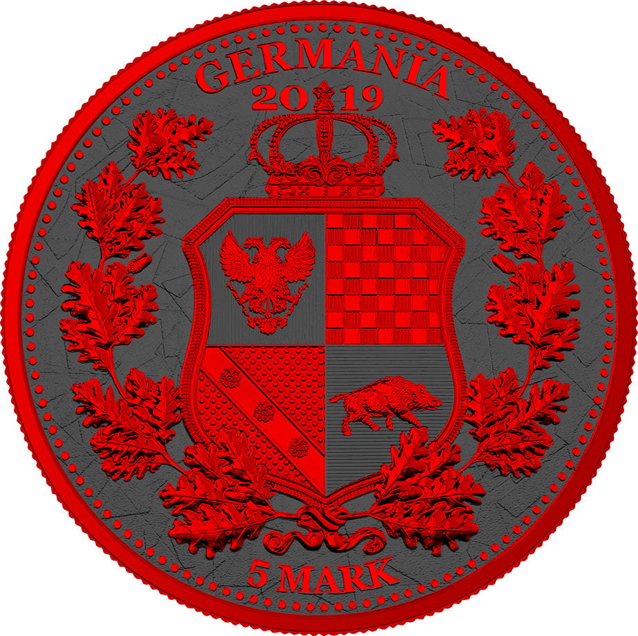 Germania 2019 5 Mark Allegories Columbia 1 Oz Silver Coin Ruthenium & Space Red