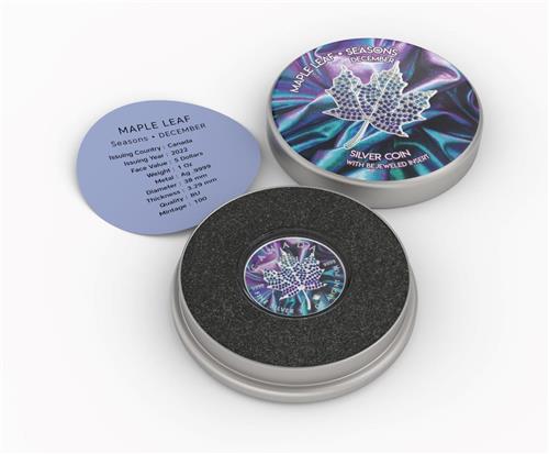Canada 2022 5$ Maple Leaf Months Edition 1 Oz Bejeweled Silver Coin December
