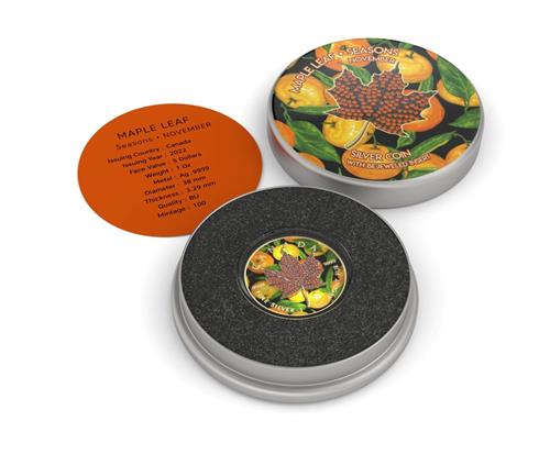 Canada 2022 5$ Maple Leaf Months Edition 1 Oz Bejeweled Silver Coin November