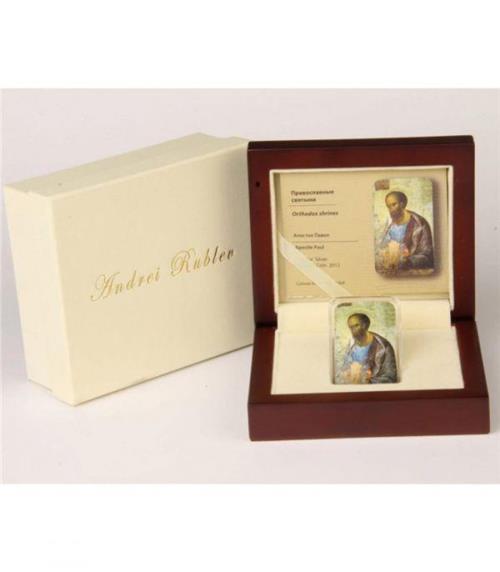 The Niue Islands $2 Orthodox Shrines: Andrei Rublev Apostle Paul Silver Coin is a remarkable piece, part of the Andrei Rublev series, which celebrates the work of the renowned Russian iconographer. This coin, with a unique convex arch shape, features a detailed and colored depiction of the Apostle Paul, beautifully crafted on 1 oz of fine silver with a purity of 999.