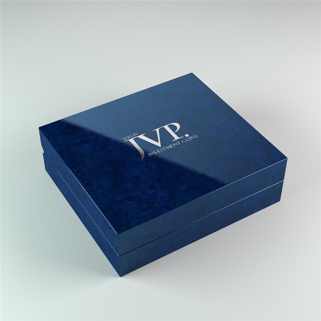 With dimensions of 27 x 47 mm, this coin is part of a limited mintage of only 3,000 pieces, enhancing its collectibility. It includes a certificate of authenticity, printed on rice paper with a hologram, blind writing, and a signature for verification. The coin is housed in an elegantly crafted wooden box, perfect for preservation and display.