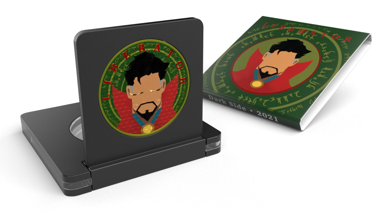 The DarkSide 2021 OneSoul Liberator Superhero Dr. Strange 1oz Silver Round is an exceptional collectible made from 999.9 fine silver, weighing 1 ounce. This limited edition, restricted to only 100 pieces worldwide, features the Liberator motif, combining a superhero theme with bold, detailed design.