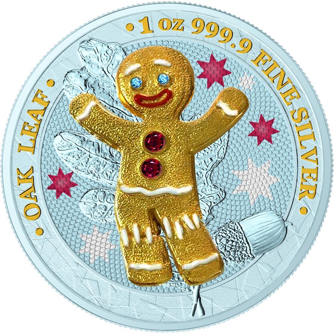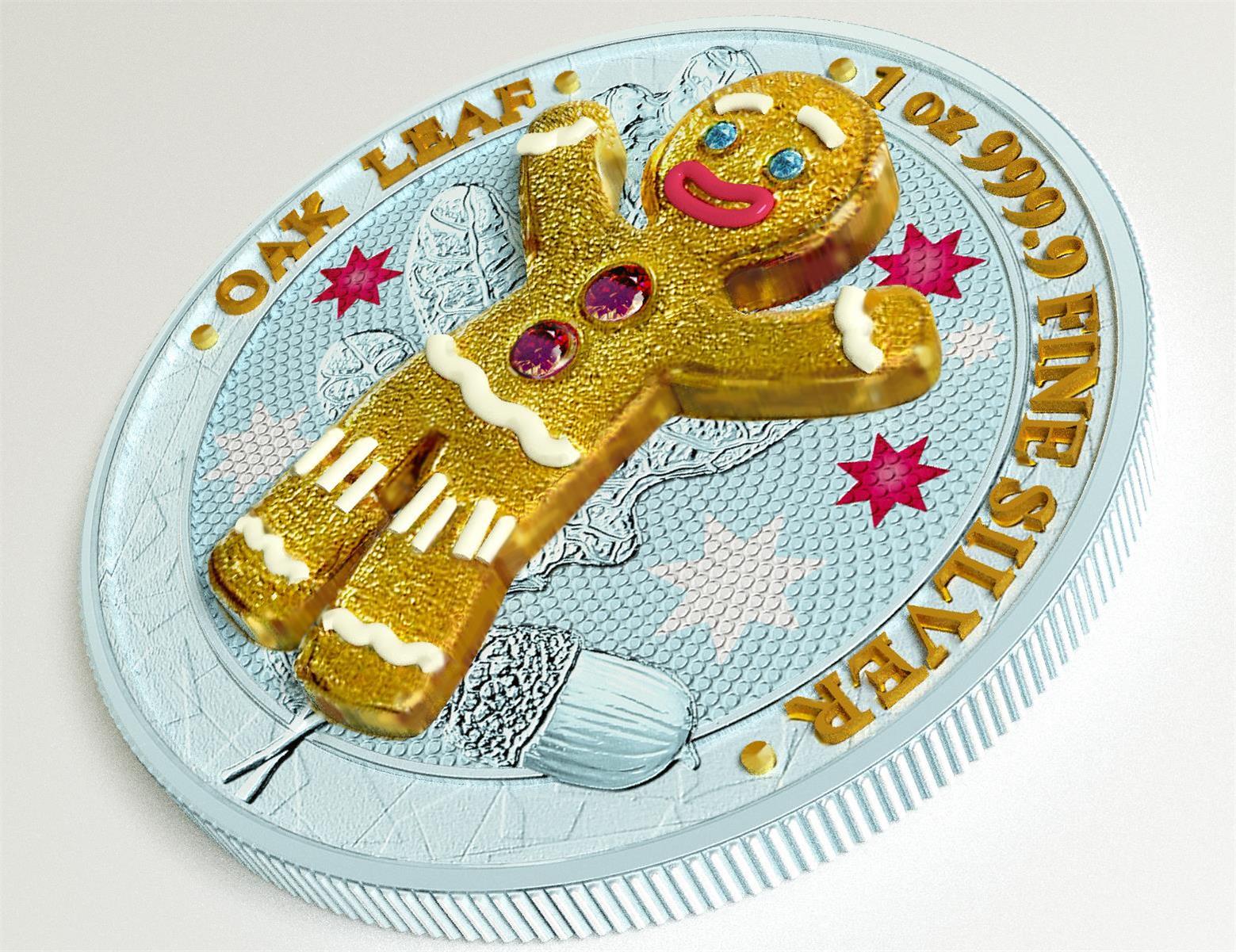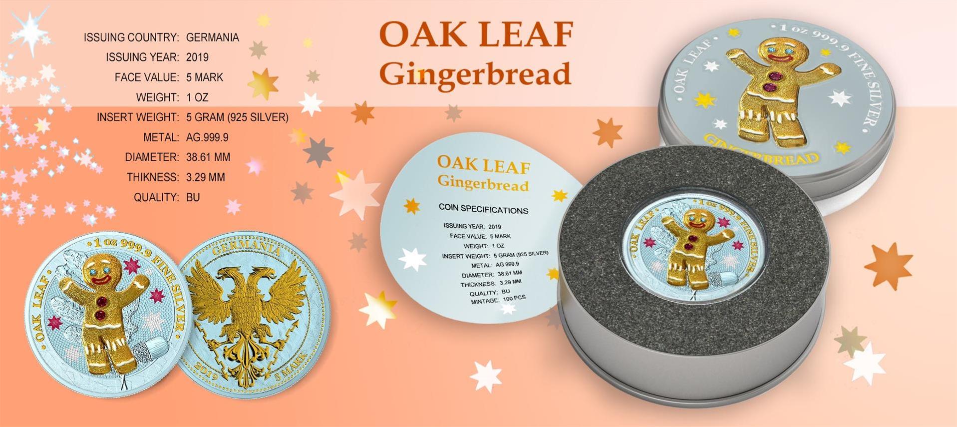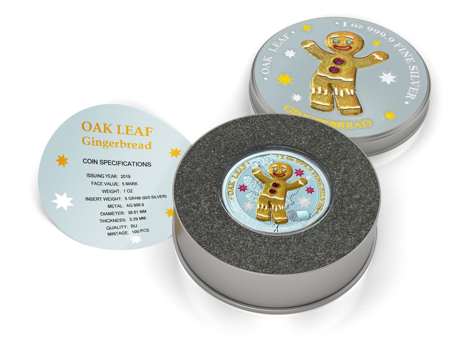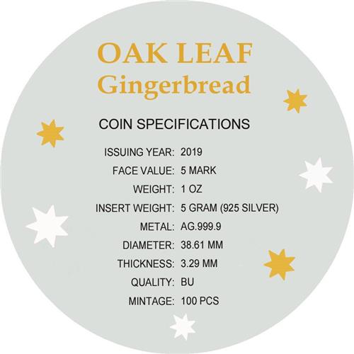 Germania 2019 5 Mark Oak Leaf 3D Gingerbread Insert 1 Oz Colored Gilded Silver Coin Blue Boy