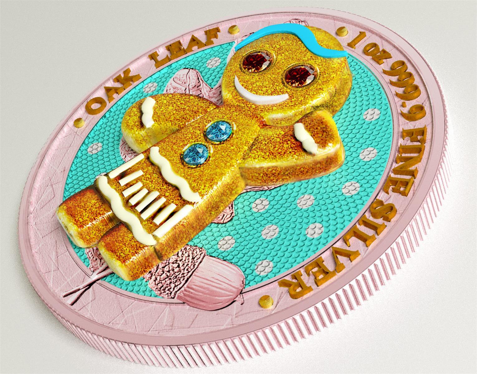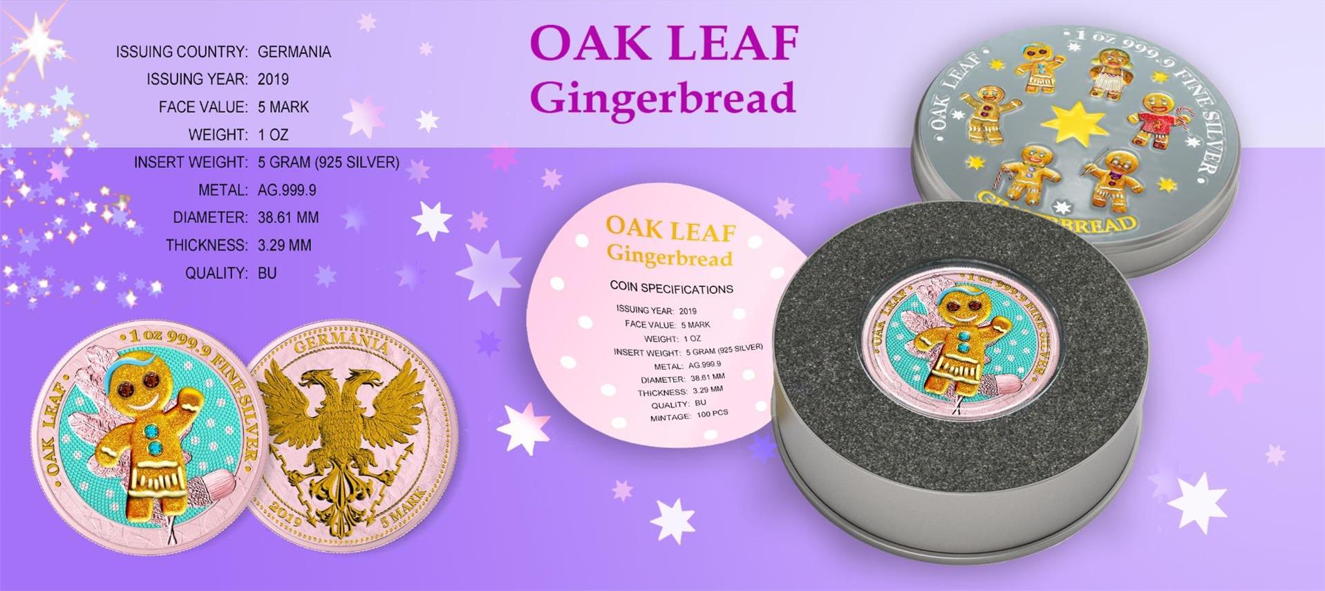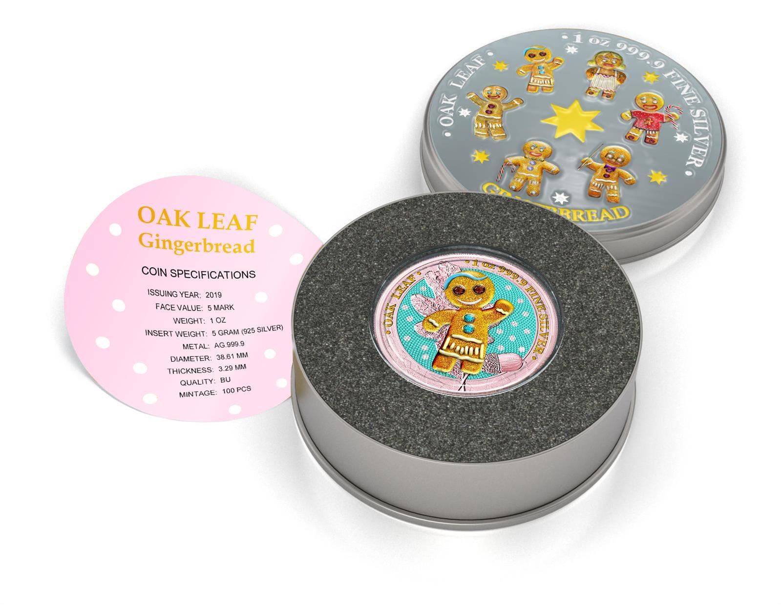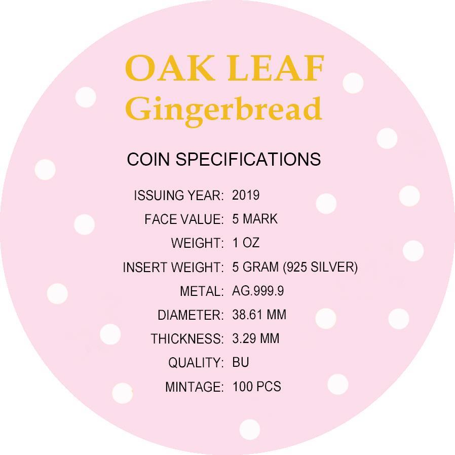 Germania 2019 5 Mark Oak Leaf 3D Gingerbread Insert 1 Oz Colored Gilded Silver Coin Pink Girl