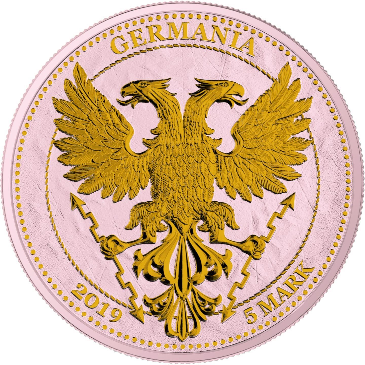 Struck in one ounce of fine silver, this limited-edition coin showcases the Germania Mint’s commitment to precision and high-quality craftsmanship. The "Five Mark" denomination continues Germania’s tradition of combining artistic innovation with a tribute to its numismatic history, making this piece both a timeless collectible and a charming expression of design.