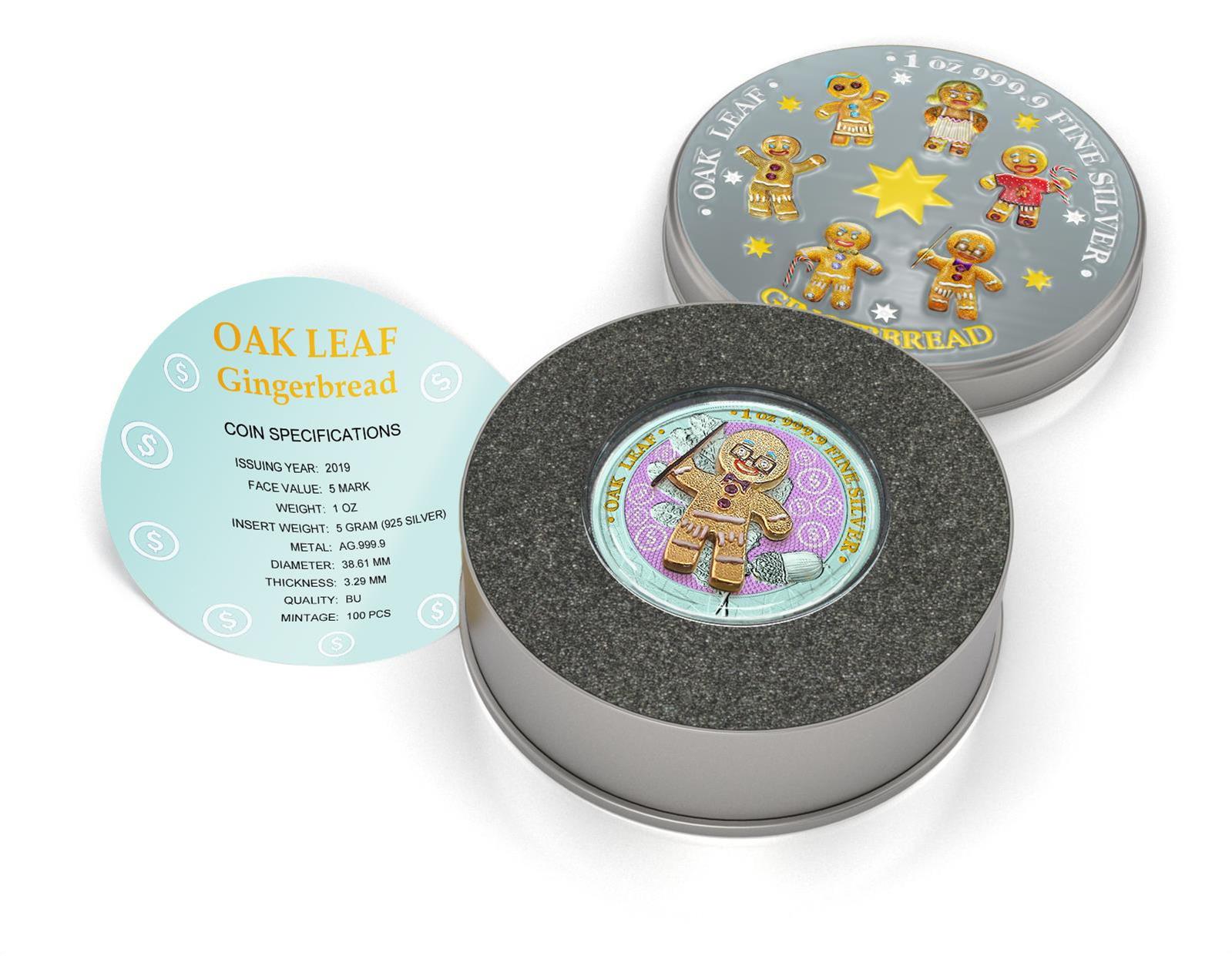 The Oak Leaf Germania 2019 Five Mark 3D Leaf Series - Teacher Edition is a sophisticated and meaningful coin that pays tribute to educators and the profound impact they have on society. This one-ounce silver coin, part of the 3D Leaf Series, features a meticulously detailed oak leaf design with a sterling silver teacher-themed insert, making it both a unique and heartfelt collector's piece.