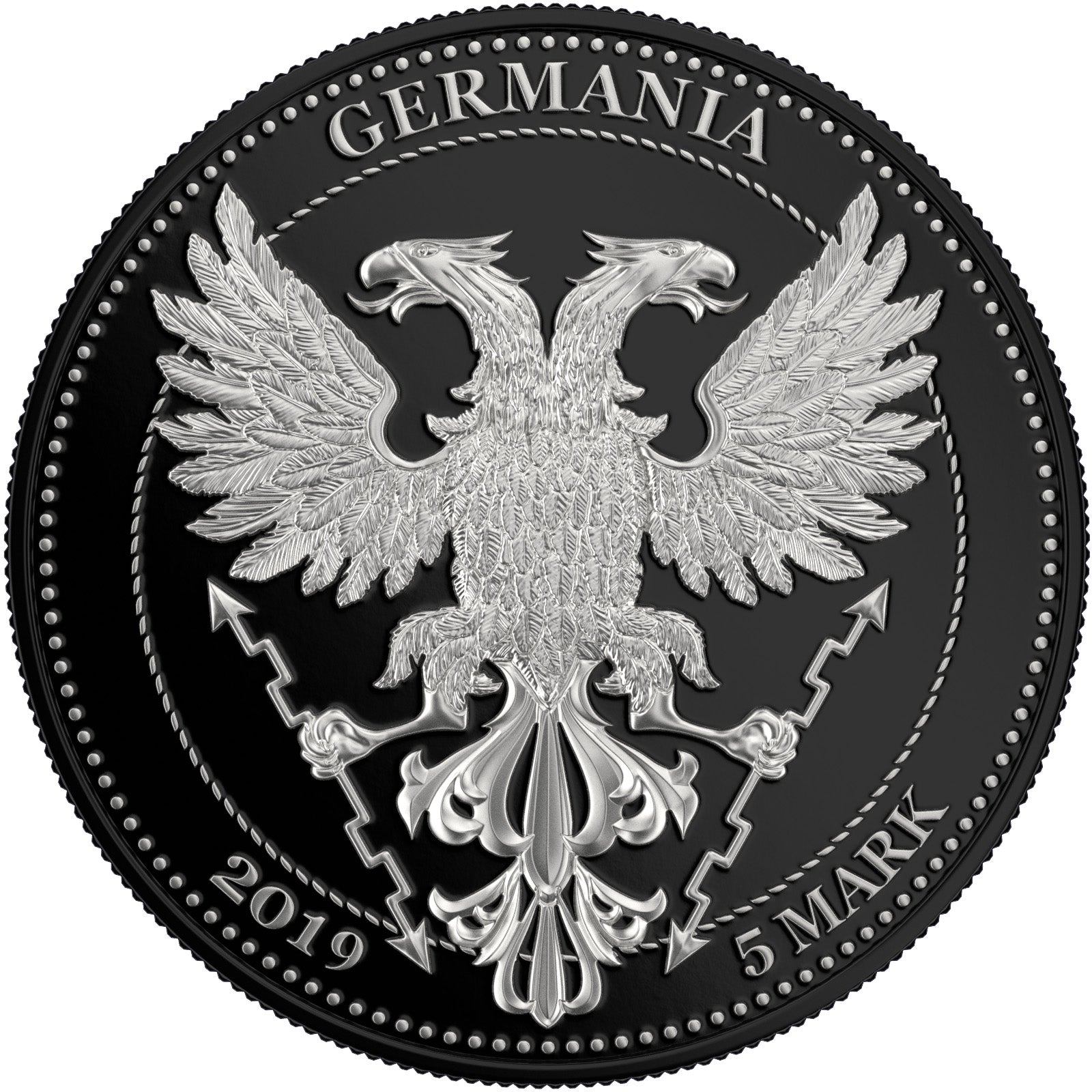 Struck from one ounce of fine silver, this limited-edition coin showcases the Germania Mint’s dedication to quality and precision. The "Five Mark" denomination pays tribute to Germania’s rich numismatic history, blending tradition with modern, innovative design.