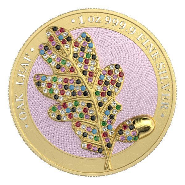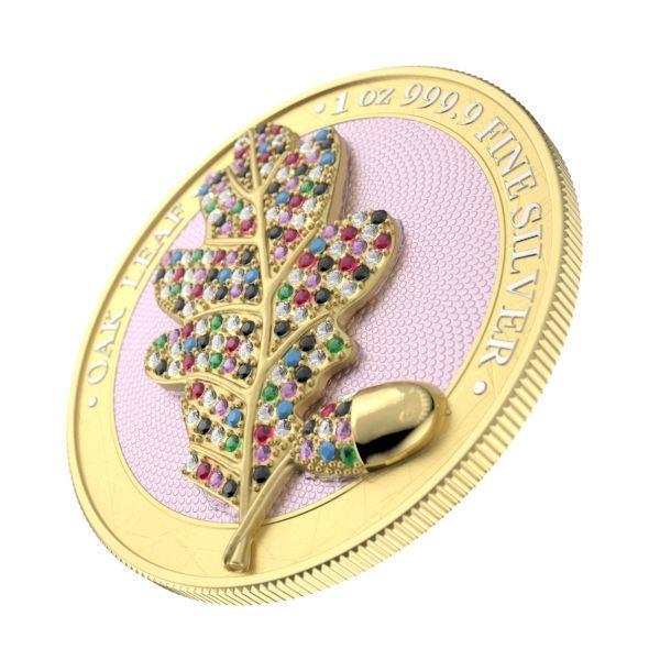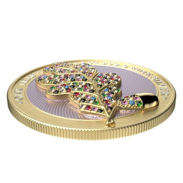 The "Yellow Edition" brings a vibrant and luminous hue to the intricately crafted oak leaf, with the 3D effect providing a sense of depth and realism that sets this coin apart. The Swarovski crystals, carefully placed on the leaf, add an extra layer of brilliance, giving the coin an elegant sparkle and a touch of opulence.